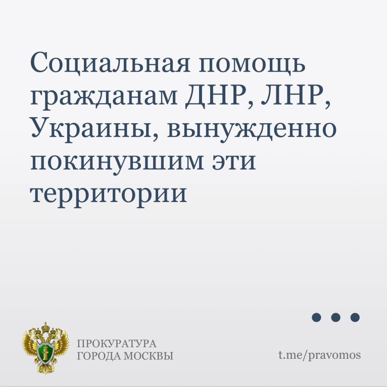 Социальная помощь гражданам ДНР, ЛНР и Украины, вынужденно покинувшим эти территории