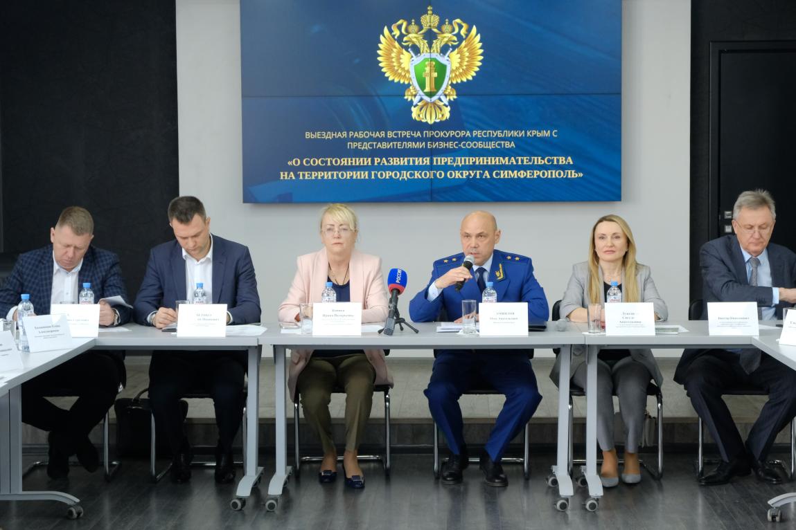 Сегодня, 11 апреля 2023 года, проведена встреча прокурора Республики Крым Олега Камшилова с представителями бизнес-сообщества, темой которой стали вопросы состояния развития предпринимательства на территории городского округа Симферополь.