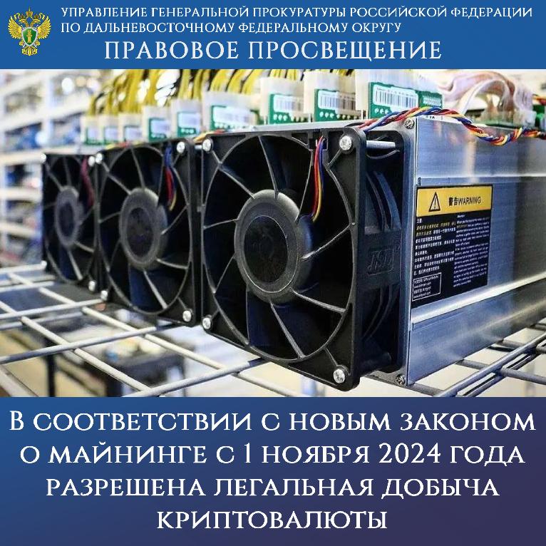 В соответствии с новым законом о майнинге с 1 ноября 2024 года разрешена легальная добыча криптовалюты