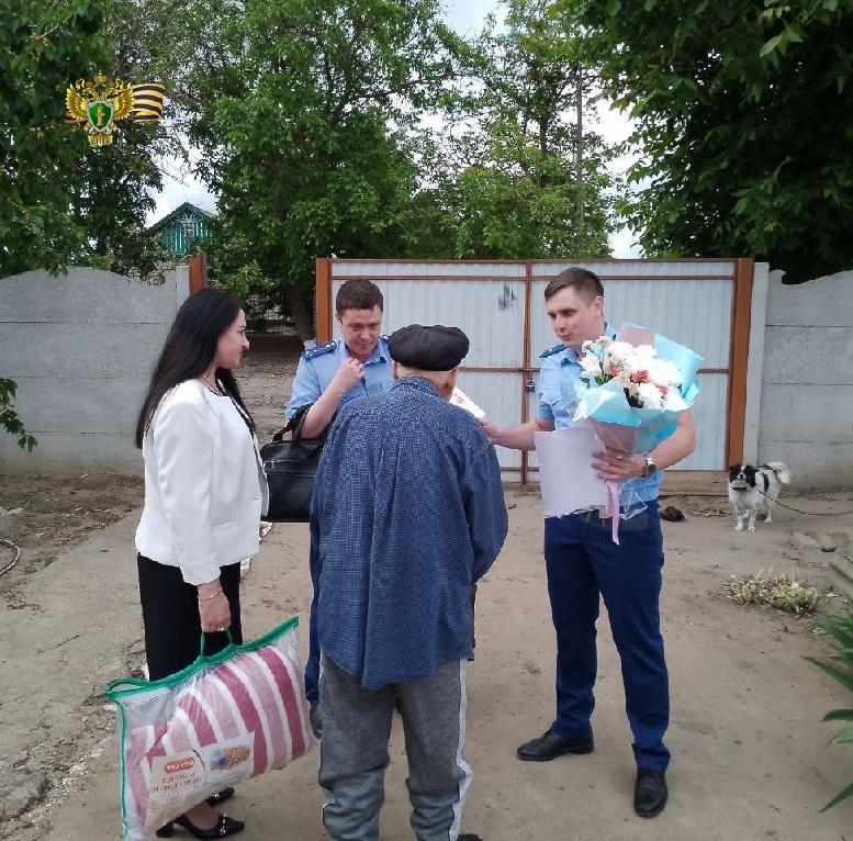 Поздравляя ветерана, работники прокуратуры Скадовского района вручили ему цветы и предоставили гуманитарную помощь.