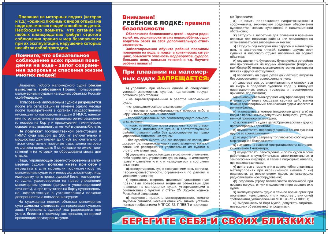 В буклете изложены правила поведения на воде, соблюдение который поможет обезопасить вас и окружающих