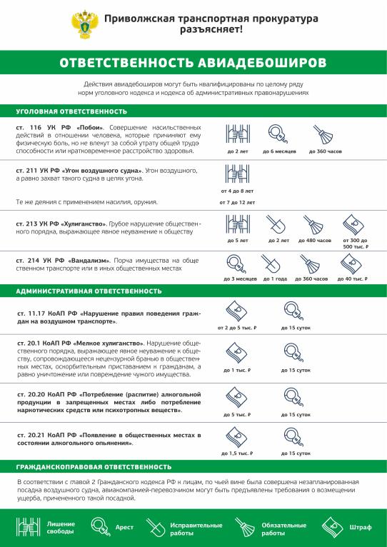 В листовке приводятся сведения о видах ответственности авиапассажиров за совершение противоправных действий на борту самолета.