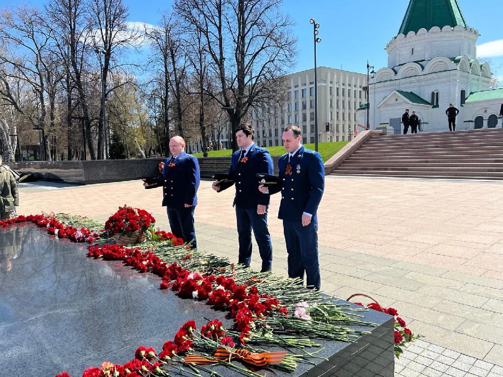 Работники Нижегородской транспортной прокуратуры возложили цветы к мемориалу «Вечный огонь» на территории Нижегородского кремля и почтили память участников войны и тружеников тыла минутой молчания